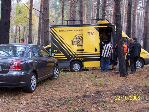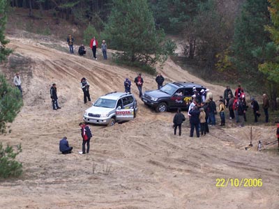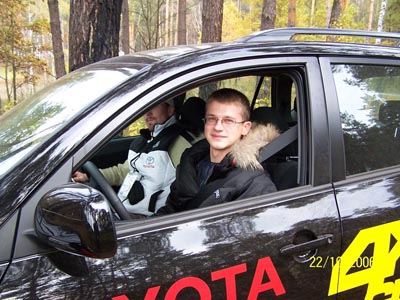 Далее. На тест было представлено три марки автомобилей: РАВ4 (для удобства обозначу Маршрут 1), Прадо (мрашрут 2) и Круизер 100 (м-3). Все проходило по графику, пока не начались тест-драйвы. На тест можно было записаться только на два из трех типов авто, я записался на "сотку" и Прадо (хотя побывал на всех трех маршрутах, на РАВке проехал в качестве пассажира и еще раз на "сотке" тоже пассажиром). По маршруту были предусмотрены два пит-стопа с проведением стрельбы из различных типов стрелкового оружия, я думаю, это для развлечения. На м-1 первая стрельба - из арбалета, вторая - дартс; м-2, первая - лук и стрелы, вторая - пейнтбольный пистолет; м-3, первая - пневмовинтовка, вторая - рогатка пейнтбольными шариками. Перед началом была небольшая пресс-конференция руководства Toyota Украина и презентация нового сайта . Потом минут на 15 на развернувшейся под балконом площадке из рыхлого песка и пересеченной местности показательные выступления Инструкторов на всех трех типах машин. При регистрации выдавали памятные сувениры кожаные планшеты и также в кожаных чехлах компасы для ориентирования на местности. Не буду долго расписывать прохождение маршрутов, скажу только, что движение по маршруту огорожено лентой и в некоторых местах было довольно узковато и опасно. На м-3 были из бревен сколочены качели, выкопаны специальные ямы для попадания двух диагонально расположенных колес машины, а через полметра - другие (например, сначала в яму попадает переднее правое и заднее левое, через полметра - переднее левое и заднее правое, и так три раза...), на м-1 проезд по бревенчатому мосту, на м-2 проезд по рыхлому песку. Отмечу, что м-3 был наиболее продолжительным, насыщенным и раскрывал самые положительные стороны тестируемых авто (на бездорожьи). Все три типа авто (не пишу "три авто", т.к. всего их было по три, т.е. девять, однако одна "сотка" даже не съезжала с трейлера, "про запас", наверное) были оборудованы коробкой-автомат, имели подключаемый полный привод, а также пониженную передачу и активную антипробуксовочную систему (А-TRC), выполняющую функцию межколесного дифференциала, межосевой дифференциал Torsen (самоблокирующийся, с возможностью принудительной блокировки), система контроля подъема в гору / спуска с горы (HAC/DAC). Вот все последнее перечисленное испытал в действии. Сказать, что впечатлило - ничего не сказать, просто очень нужная вещь, когда автомобиль двигается на спусках-подъемах САМ, не нажимая на педали и авто чувствует себя абсолютно уверенно и не меняет скорости движения (прибл. 5 км/час). Перед тест-драйвом симпатии у меня были к Прадо, после - твердо переубедился на "сотку"! Не умаляя достоинств РАВ4 прийдется признать все-таки направленность данного авто на преимущественно городской цикл эксплуатации. Итак, выводы (ИМХО): РАВ: отличный малый внедорожник, однако система HAC/DAC работает достаточно шумно и первое впечатление "порвался пыльник ШРУСа, забился песком и хрустят все шестеренки вместе с шариками" , маневренность на высоте! Оценка 4 (из пяти) для своего класса. Прадо: отличная проходимость и плавность хода по лесным кочкам и рыхлому песку. Немного подпортило впечатление, но это скорее от неопытности тестировавшего машину водителя, который не придал должного ускорения перед песочной преградой и посадил Прадо на пузо. Только "сотка" галстуком смогла его вытащит