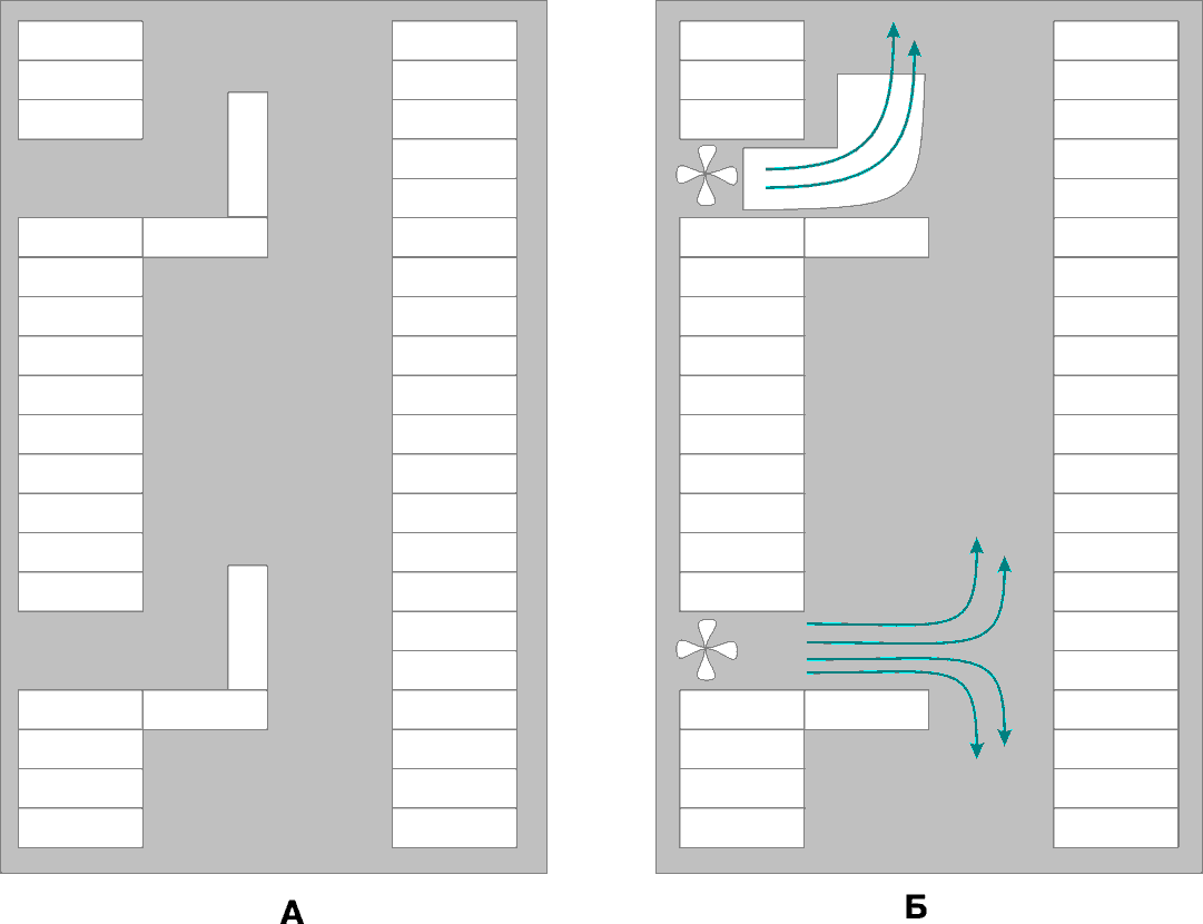 нынче в новостроях по проекту вариант "А", но в реальности чаще всего имеем вариант "Б" причину запахов от соседей показано на нижней картинке варианта "Б", а на верхней - вариант лечения проблемы (при вменяемых соседях) при невменяемых - вентилятор с обратным клапаном