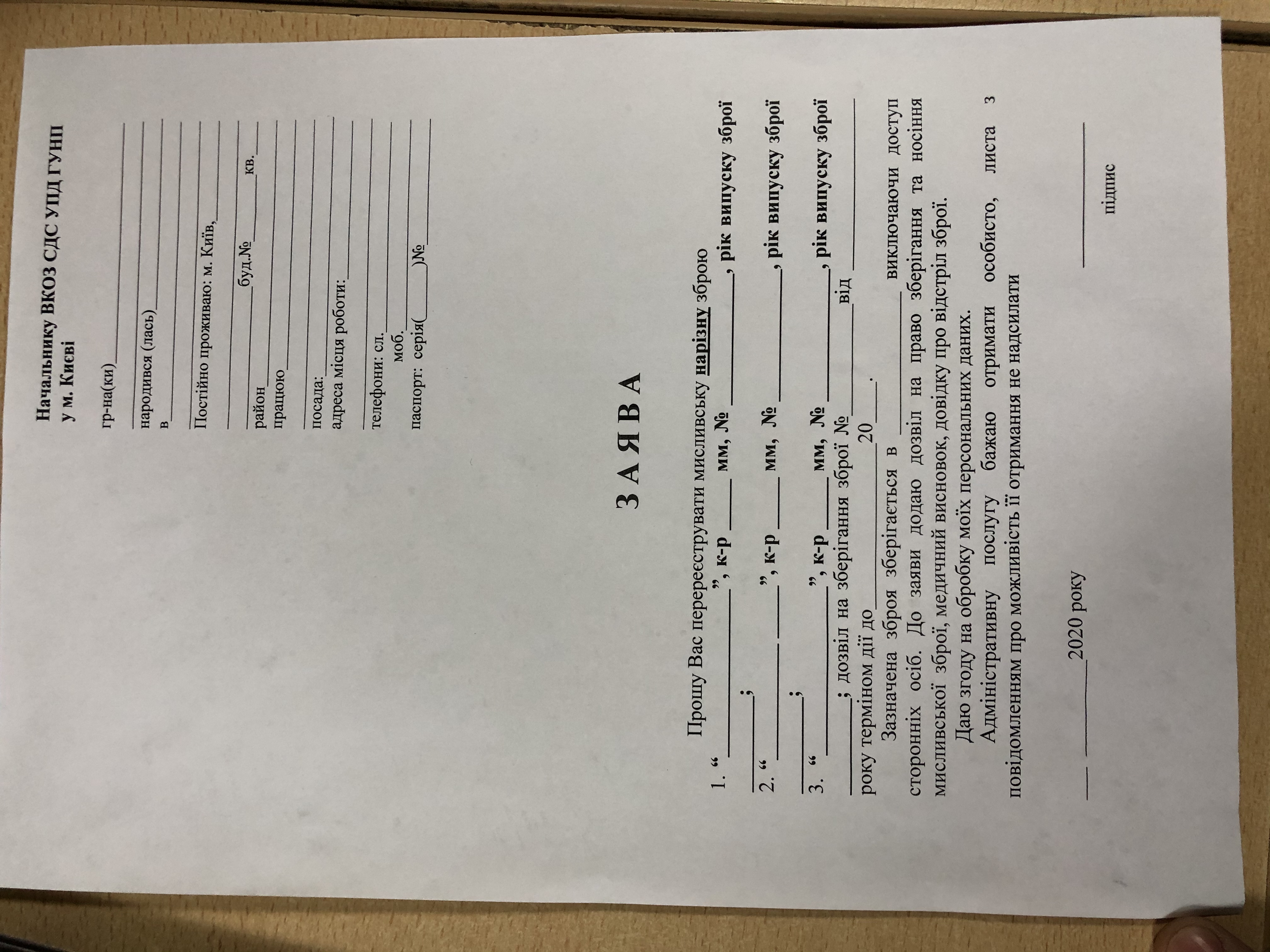 Сфоткал по нарезному. Бланк заявления, квитанция на продление 9 гривен и новая корочка. Если у Вас вклеен листик в дозвил, то его сейчас заставляют менять на новый бланк. Так, что платите 2 квитанции. Реквизиты новые.