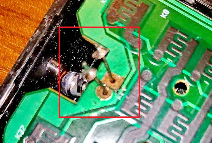 Оторвался диод в пульте ДУ. Оторвался, судя по всему, с частью пластины, по которой распаяны контакты. Как-то так сходу не могу сообразить как припаять.