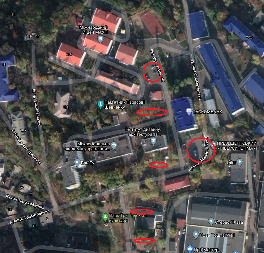 Як варіант - МАУП (в ньому самому кілька парковок, що ввечері порожні), але там постійно змінювався режим в'їзду на територію, не знаю як воно зараз, давно не був.