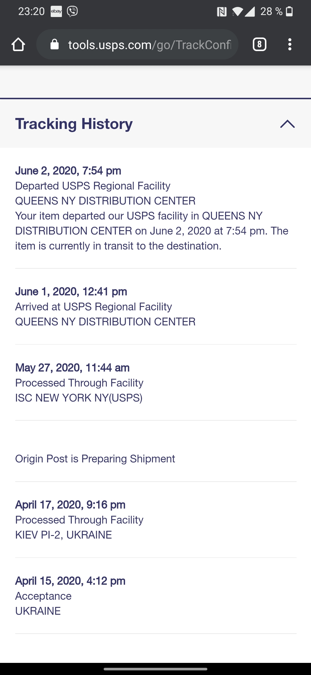посылка вышла с таможни 27 мая, до сих пор даже из Нью Йорка не выехала.