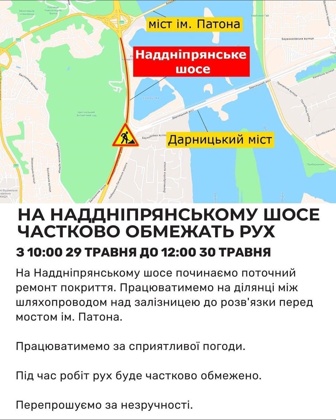 Re: Надднепрянское шоссе-завтра ремонт