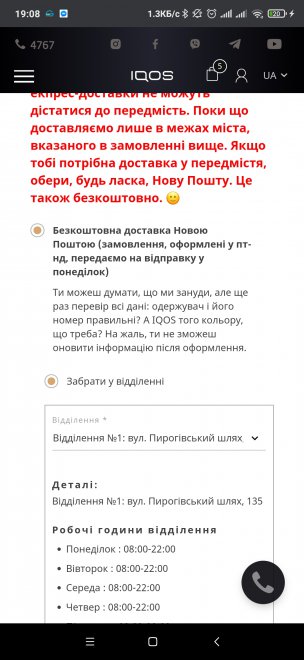 После 20 чисел мая iqos.com.ua одни негативные отзывы. Сам узнал только после того как уже заказал Стики едут вместо пары часов уже третий день и в лучшем случае вечером забирать с отделения НП что вообще теряет смысл заказа Заказывал т к в магазинах возле дома то моих purple то жены amber нет периодически (разбирают) а с таким раскладом .....