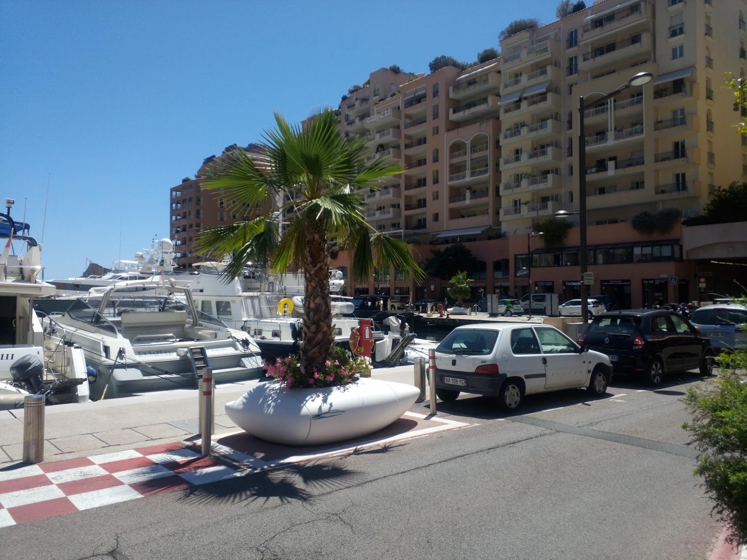 Монако, парковка яхт во дворе дома в спальном районе