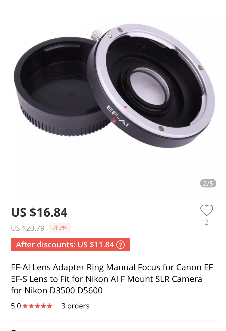 Существуют, но есть ли смысл, в адаптера должна быть линза(для фокуса на безконечность), что ухудшает картинку, не говоря об удобстве пользования. #aliexpress $16.84 EF-AI Lens Adapter https://a.aliexpress.com/_B1bOnG