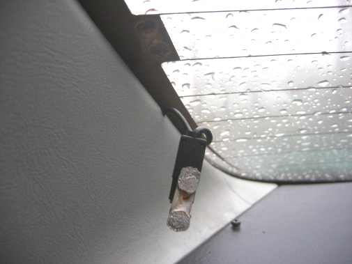 Приготовление электролита - не путать с электролитом акка - тоже не представляет сложности. В пол-стакана воды насыпается пару чайных ложек медного купороса, и размешивается до растворения. Не растворилось полностью - не страшно, не обращайте внимания. В полученный р-р надо добавить 0,2-0,3% процента концентрированной серной кислоты или 0,5-1% электролита для аккумулятора - это примерно половина чайной ложки электролита на эти полстакана. Ну и собственно процесс. Обе клеммы стекла подсоединяются к "массе" (если стекло установлено в автомобиле и на нем цела хотя бы одна греющая нить - ничего делать не надо), а к трубке с тряпкой подсоединяется "плюс" аккумулятора. Мочим положительный электрод в растворе и начинаем активно и непрерывно натирать место обрыва нити в течении 3-5 минут. Через раствор проходит ток, который переносит ионы меди с электрода на греющую нить. При небольшом повреждении нити разрыв полностью затягивается медью, при больших разрывах омедненные участки следует облудить неперегретым паяльником и припаять перемычку из тонкого провода. Ограничивать ток не требуется, т.к. через несколько секунд анод пассивируется и ограничивает протекающий ток. Не следует забывать, что раствор содержит серную кислоту - для кожи такая концентрация неопасна, но на одежде через неделю - две появляются дырки ( Поэтому не советую проводить процесс без снятия стекла, хотя это вполне возможно.