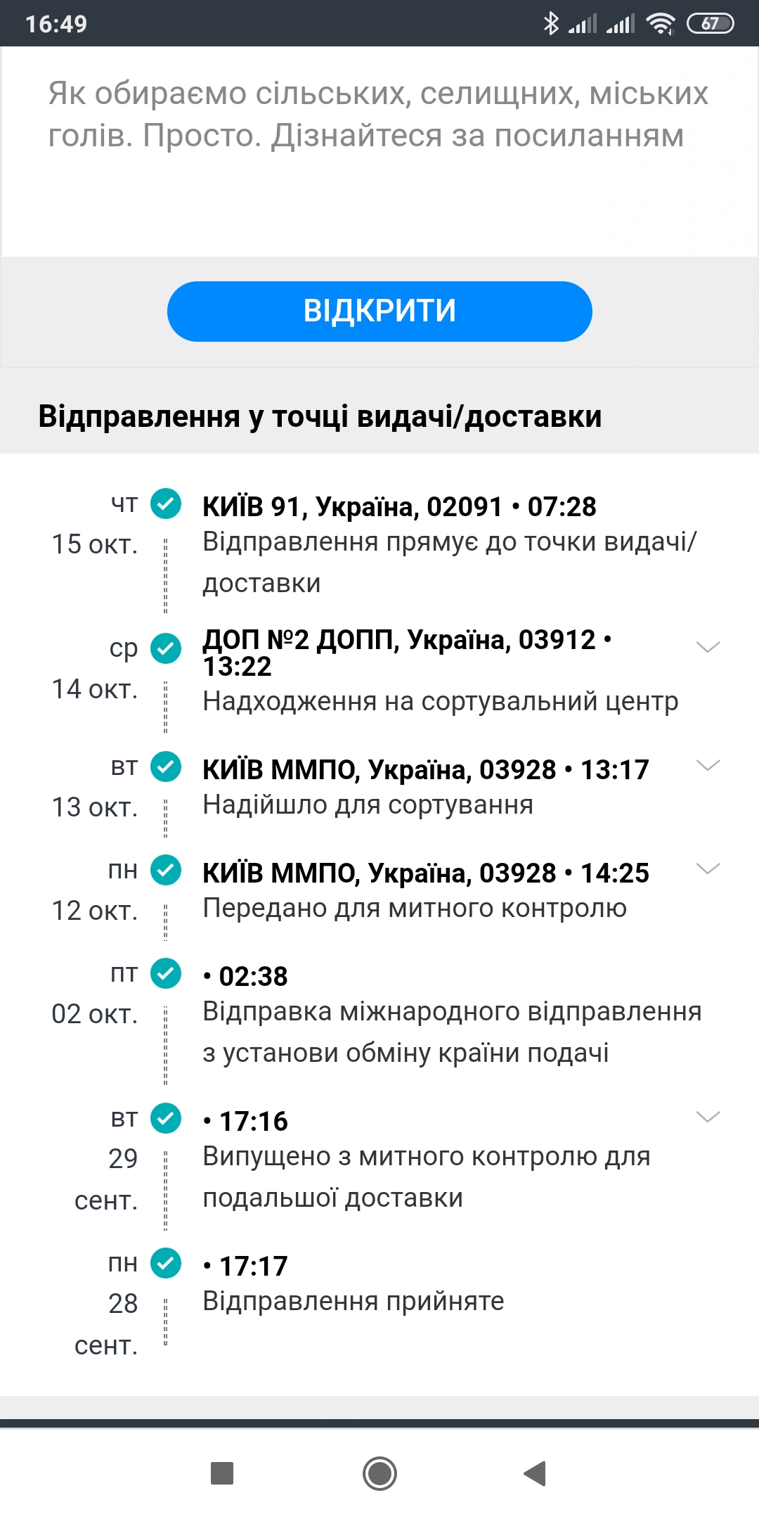 Укрпочта приняла посылку после таможни. Поидее должно быть сегодня завтра у меня в отделении Вот в нашей системе по треку