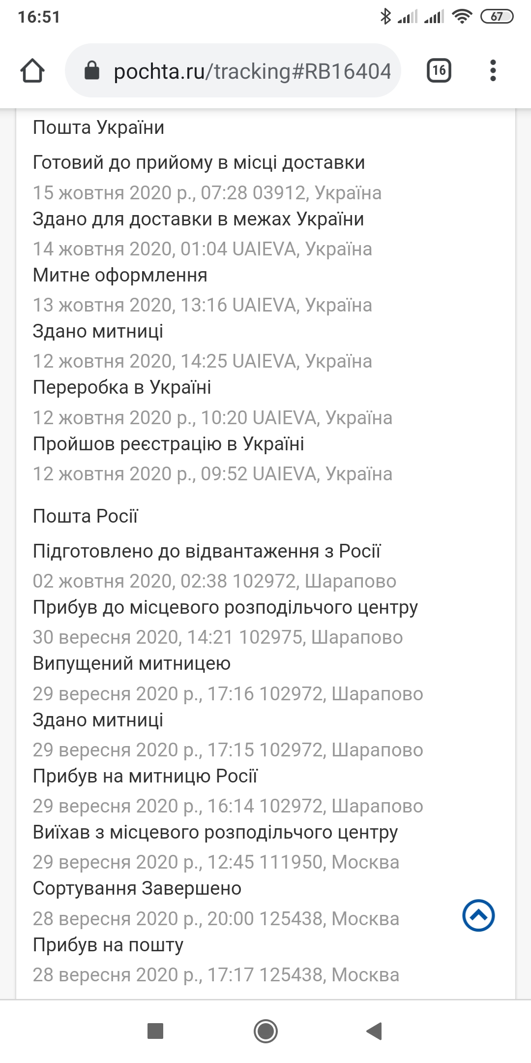 Оплачивал на сайте запчастей, обычной монокарточкой + доставка выбрал типа Севастополь, но с фактической доставкой в Киев, доставка вышла что то около 600ре, на мыло пришло письмо аля Ваш заказ отправлен Почтой России. Номер Вашего отправления – RB00000000RU Отследить заказ, изменить дату и место доставки Вы можете тут – https://www.pochta.ru/tracking