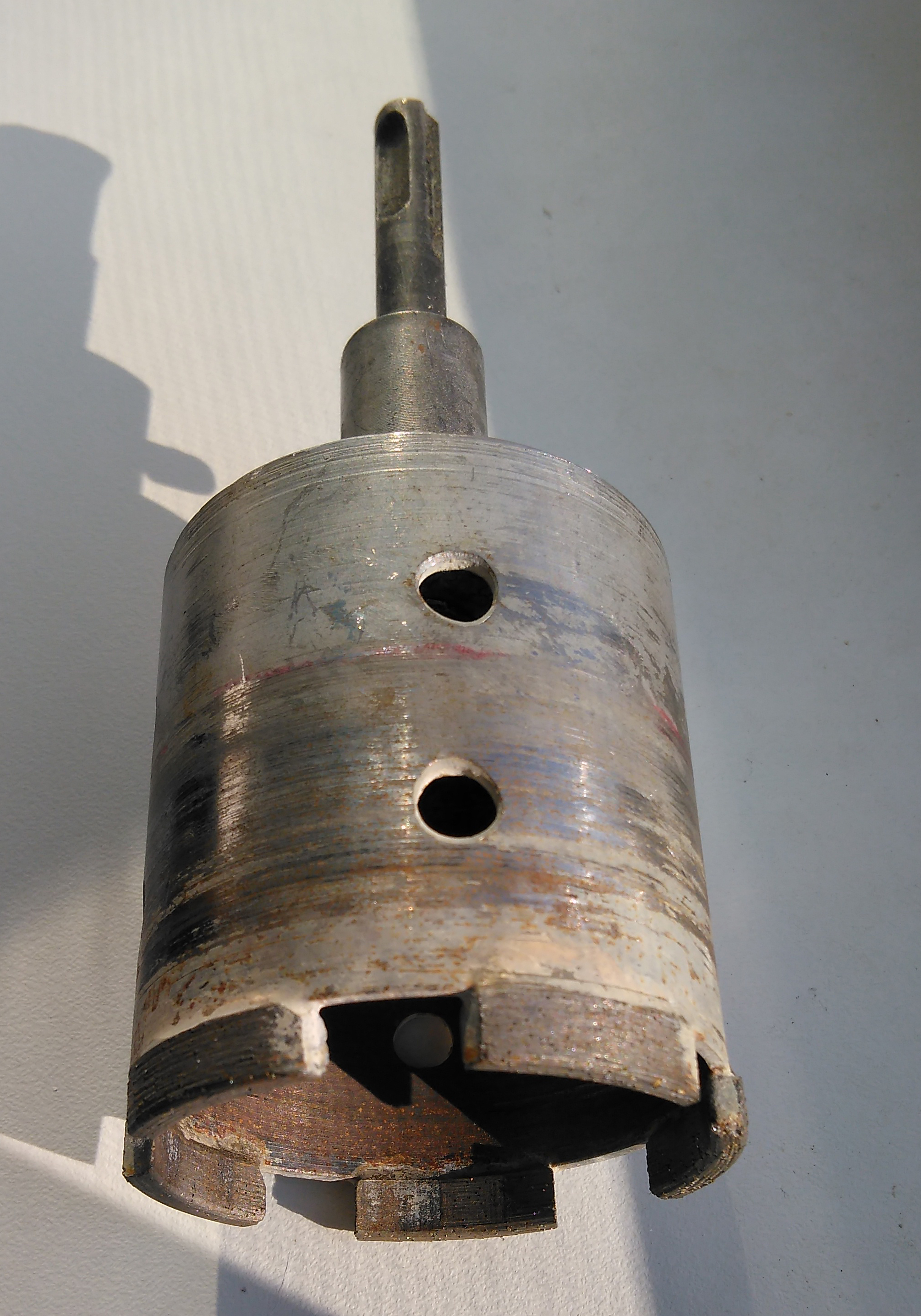 Я делал подрозетник как раз в тонкой стене сантехкабины, толщины достаточно, просто сверлить надо алмазной коронкой ну или на крайняк вольфрамовой (хуже, но она дешевле). То что выше показывали с зубами по кругу - этим бетон сверлить нельзя, то коронка для кирпича и прочих мягки материалов, бетон она грызет ну очень плохо - задолбаешь и себя и всех соседей, а несущий бетон ей вообще не по зубам. У меня такая коронка, сверлил 100500 подрозетников ей, в том числе в несущей стене, арматуру даже не замечает. А если еще тонкой струйкой водичку лить, так вообще красота, никакой пыли и все отходы стекают в виде каши в специально прикрепленный на стену кулчечек
