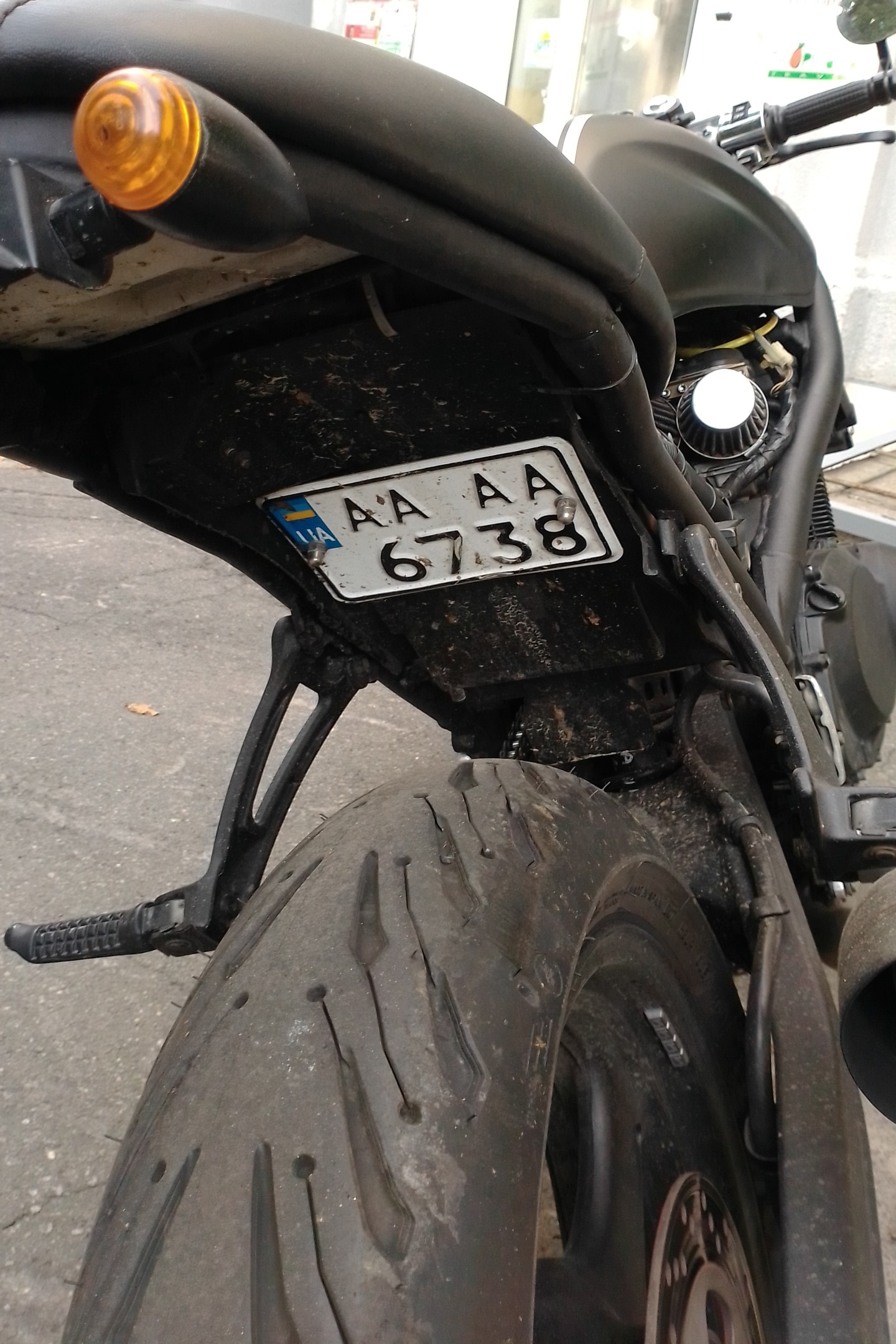 Мотоцикл не місцевий, бо вранці був политий квартальним Пантелеймоном бак та сидіння, ще те амбре, прикольний кіт, не любить незнайомі авто, мітить від душі)))