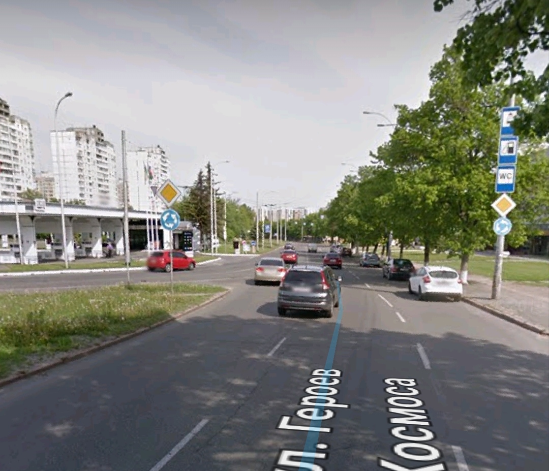 На Героев Космоса смена знаков приоритета, если ехать в сторону ул. Святошинской перед АЗС Сокар. Теперь разворот главный, а перед разворотом висит знак уступить. На скрине, где виден знак главной дороги, теперь уступить знак висит. Не пойму кому пришла в голову эта идея