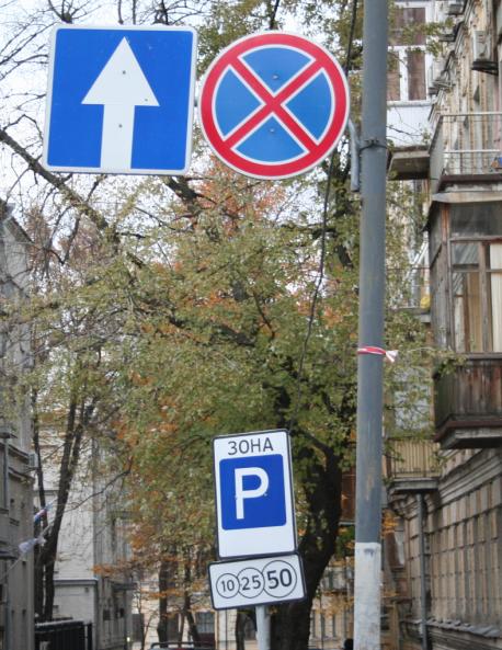 Леонтовича? А в чём тут несоответствие? Фактически знак запрета остановки действует до того, как начинается зона парковки. Хотя с нынешней эвакуаторной практикой возможны эксцессы