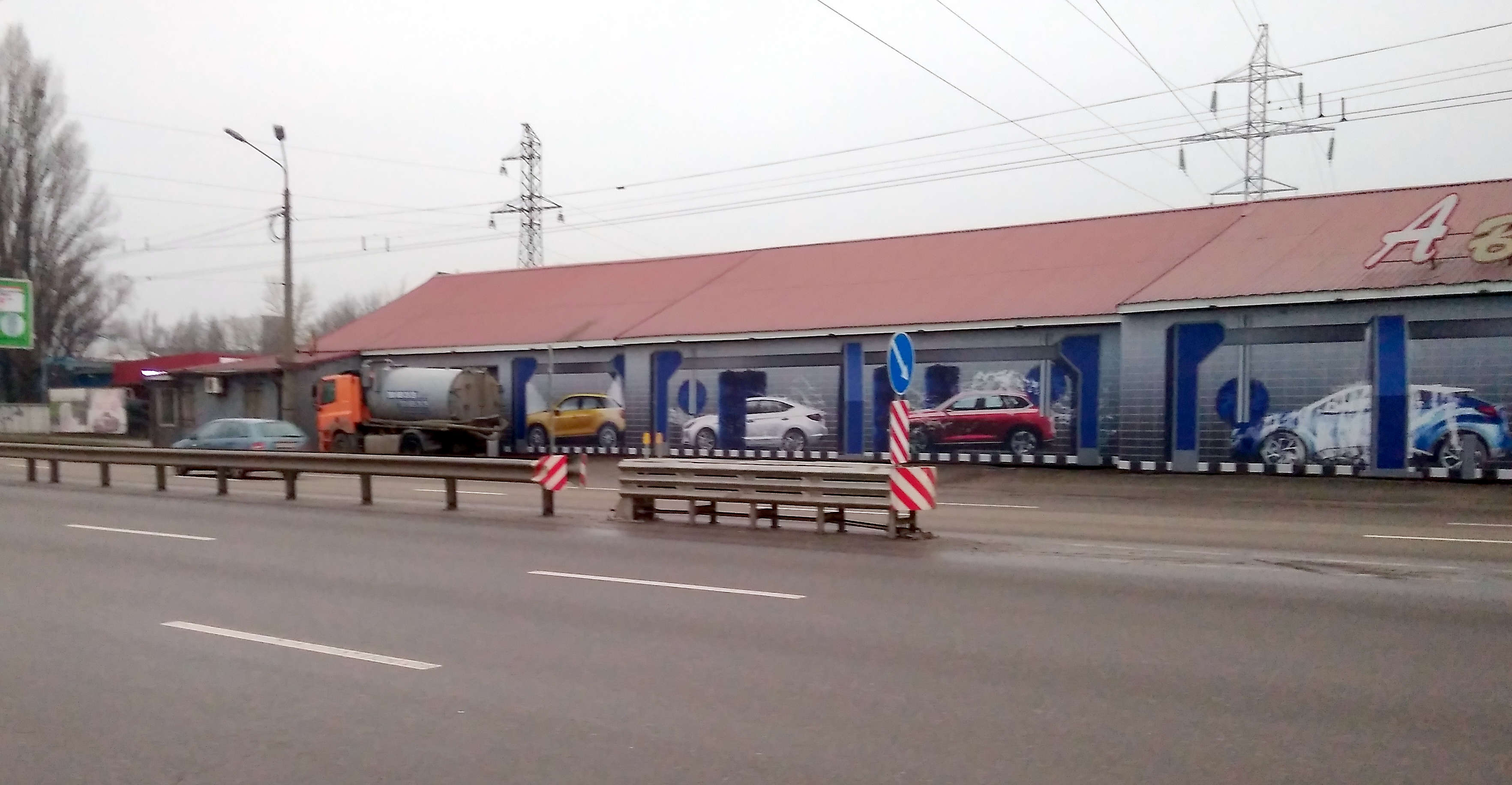 Потому что начало отбойника расположено внизу спуска, а логичнее расположить его при заезде на путепровод со стороны Тимошенко. И решить сразу две задачи: возможность нанизывания и возможность выезжать/заезжать в гаражные кооперативы через сплошную.