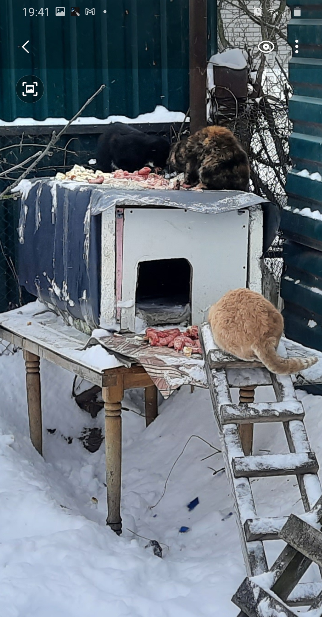 Картина така. Є на дачах кішка, по суті вулична, формально сусідська. Тобто вона реально сусідська, вони її тримають годують лікують. Але. До хати не пускають бо в когось з малих дітей алергія. Цієї зими вперше вони не змогли зимувати на дачі. Кішку забрати теж не могли в квартиру. Тому пригрузили мене її годувати до весни на їх подвір'ї. Самі раз в пару тижнів приїжджають. Досі було все ок. Кішка десь там собі ходить полює тусується і додому за хавкою по графіку приходить. Але тепер я очкую за ті морози чи виживе. До себе пустити не можу бо в мене на дачі жирують два повноцінні коцури. І кішку не ризикую ловити і закривати десь в себе (та й де, дача опалюється частково) - ще й вона не стерилізована і я їй кагбе чужий. Завтра буде -20. І що робити?