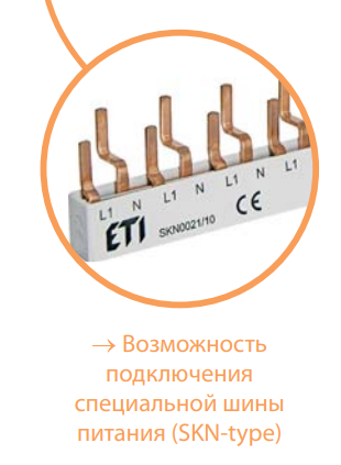 Розраховано на відповідну двополюсну шину, а от з підключенням проводів до шини - так, є певна загвоздка, бо, наприклад, для цих же однополюсних ETI KZS-1M, паспортний перетин проводів - усього до 10мм2. Не знаю, як щодо проводів 6мм2, але 4мм2 (моножила) - повинен би влізти, туди ж (знизу, під шину). 4мм2 повинно вистачати, як мінімум, для гаража. Та і для невеликого будинку - теж. Для гаража - я б обійшовся без шин, використав би просто провода.