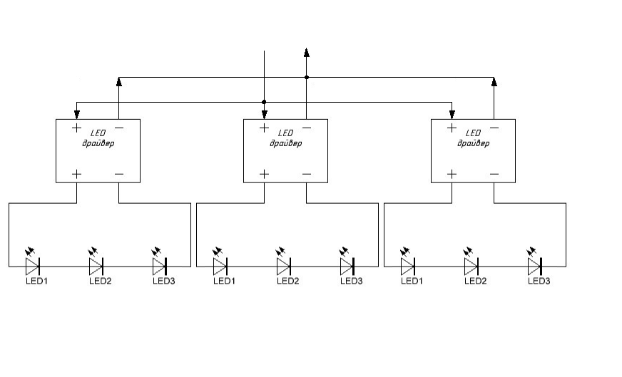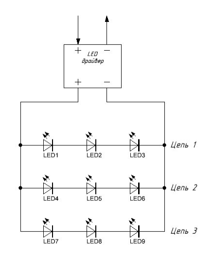 то есть так? а резисторы на каждую цепь надо ставить? Вы имеете ввиду 3-и цепи по 3х1Вт напряжением 3,2в?