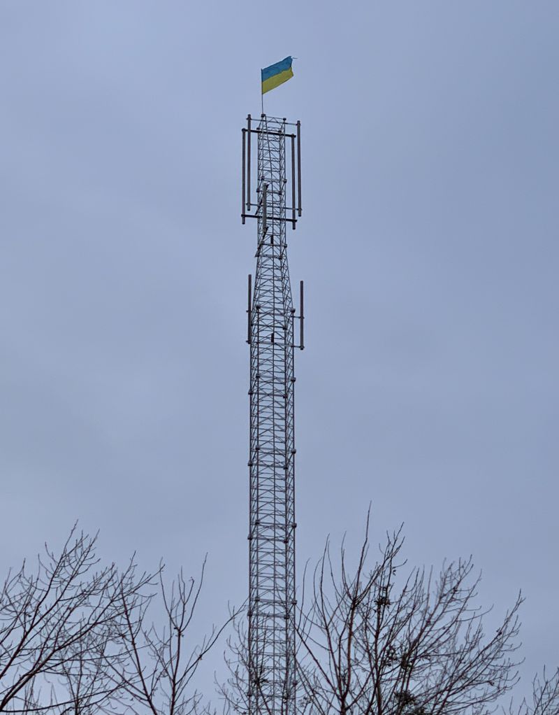 Это мачта мобильной связи. Там уже есть крепления под антенны. Чтобы местные не тошнили о вреде излучения от будущей вышки придумали вешать флаг Украины.