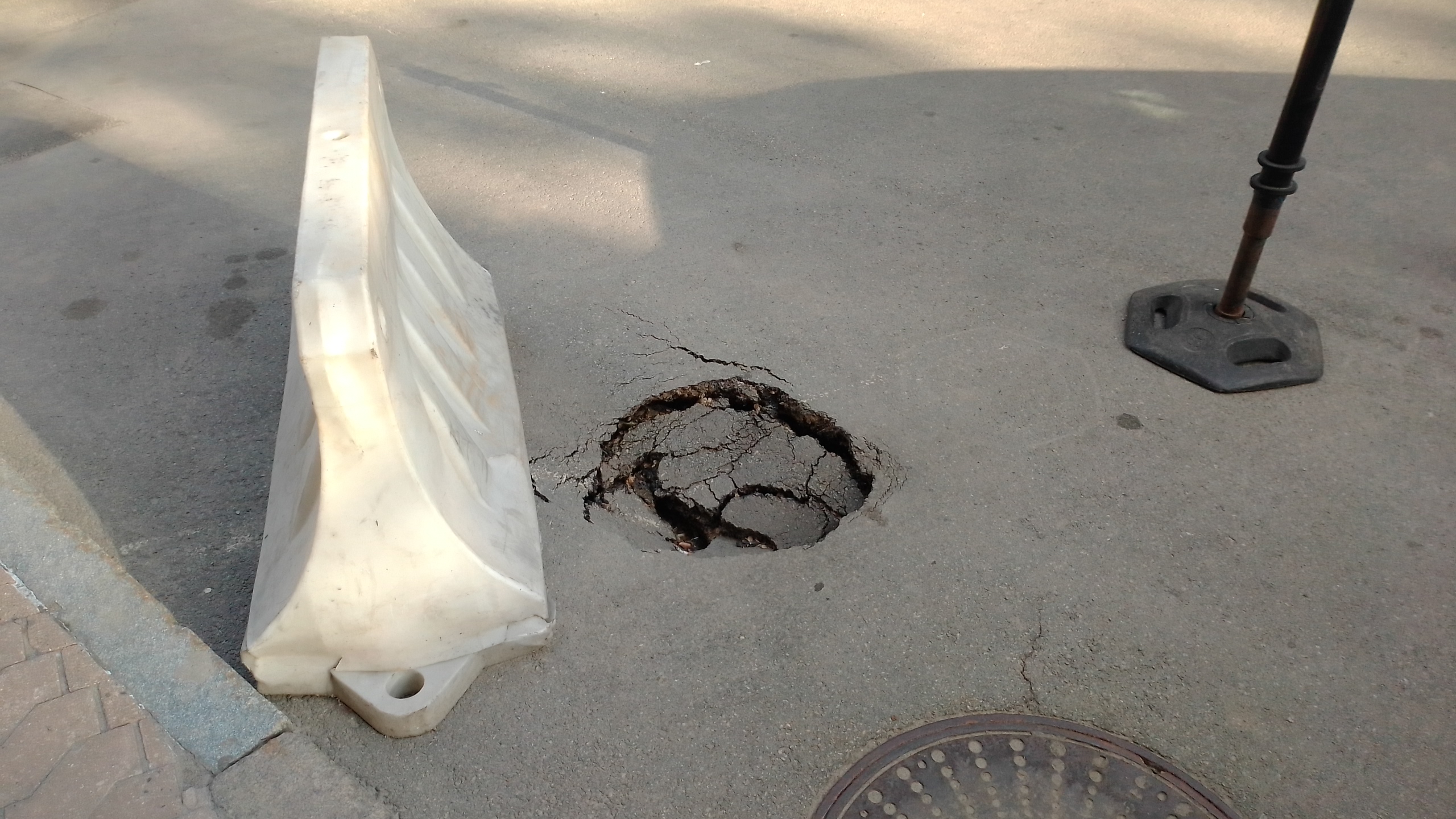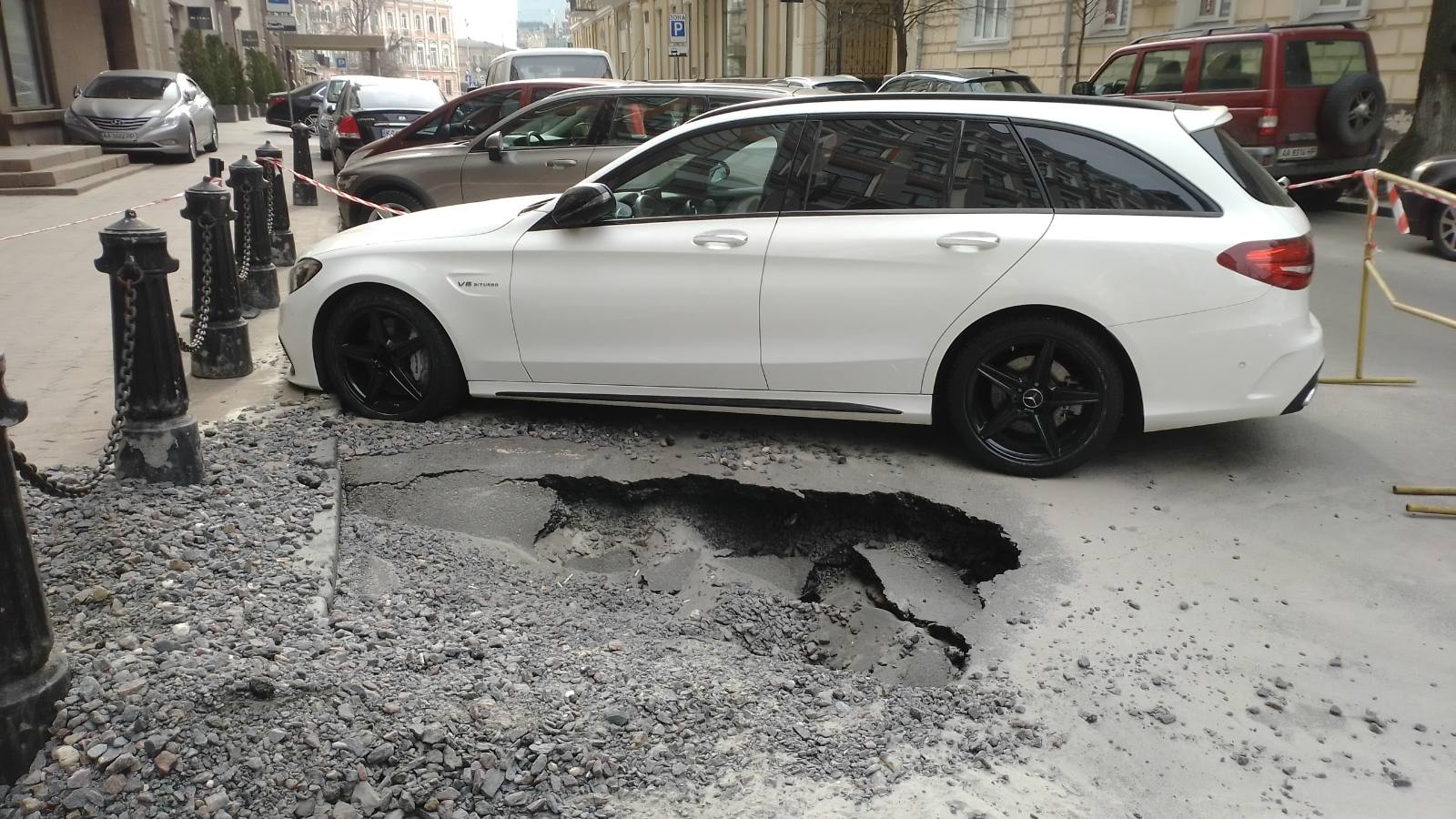 В суботу бабахнуло, фонтан, щебінь в різні боки. Пасат добряче щебнем побило, власник одразу підійшов. Аварійна служба/поліція. Сьогодні проходив, а мерс стоїть, під асфальтом вимило глибоку яму. Можливо власник не в курсі?