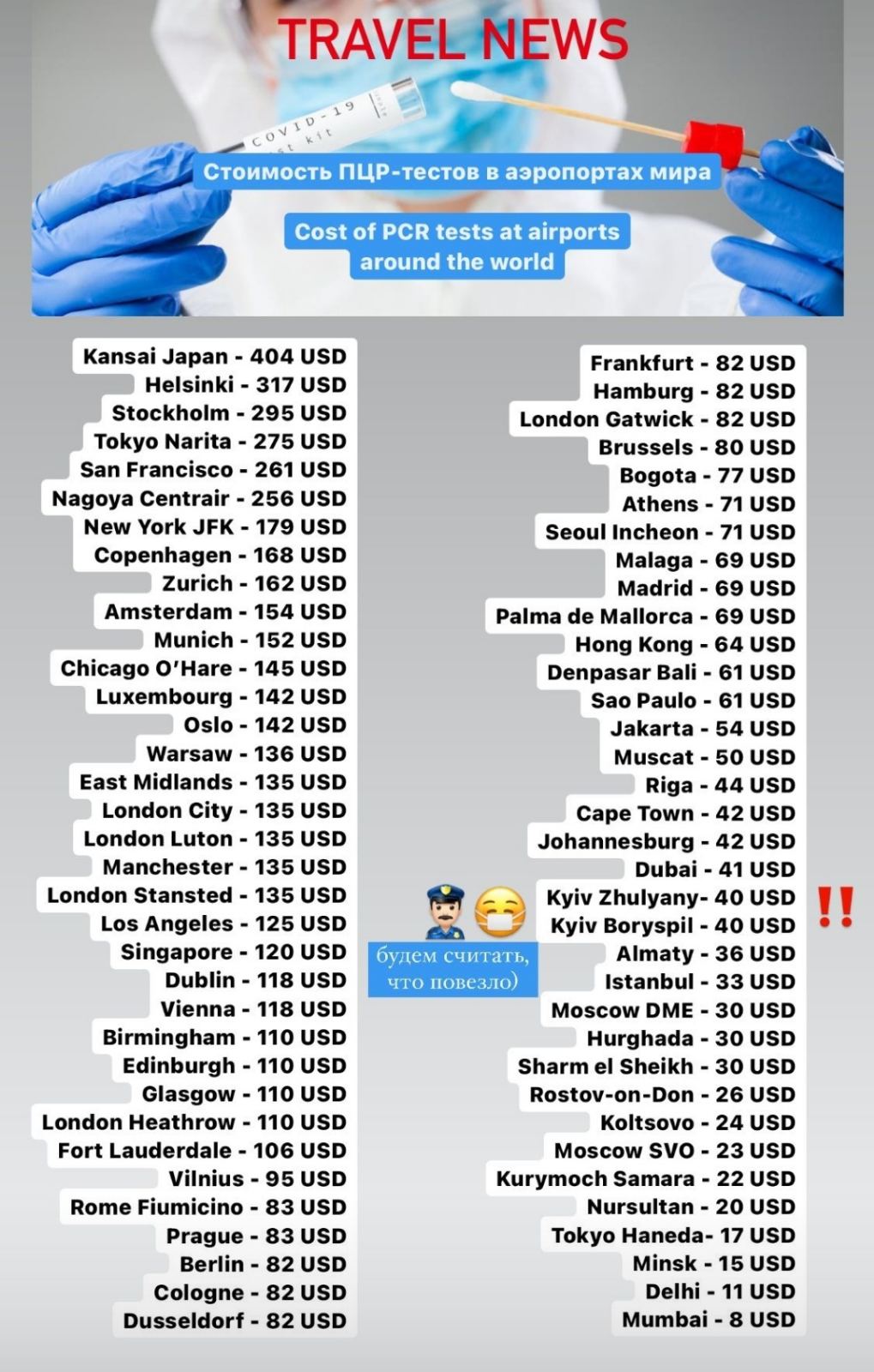 Не интересовался, как в других странах, но, к примеру, Польша признает антиген тест, который в аеропорту стоит примерно $53 (200 злотых) - это все-таки не $153, как в таблице.