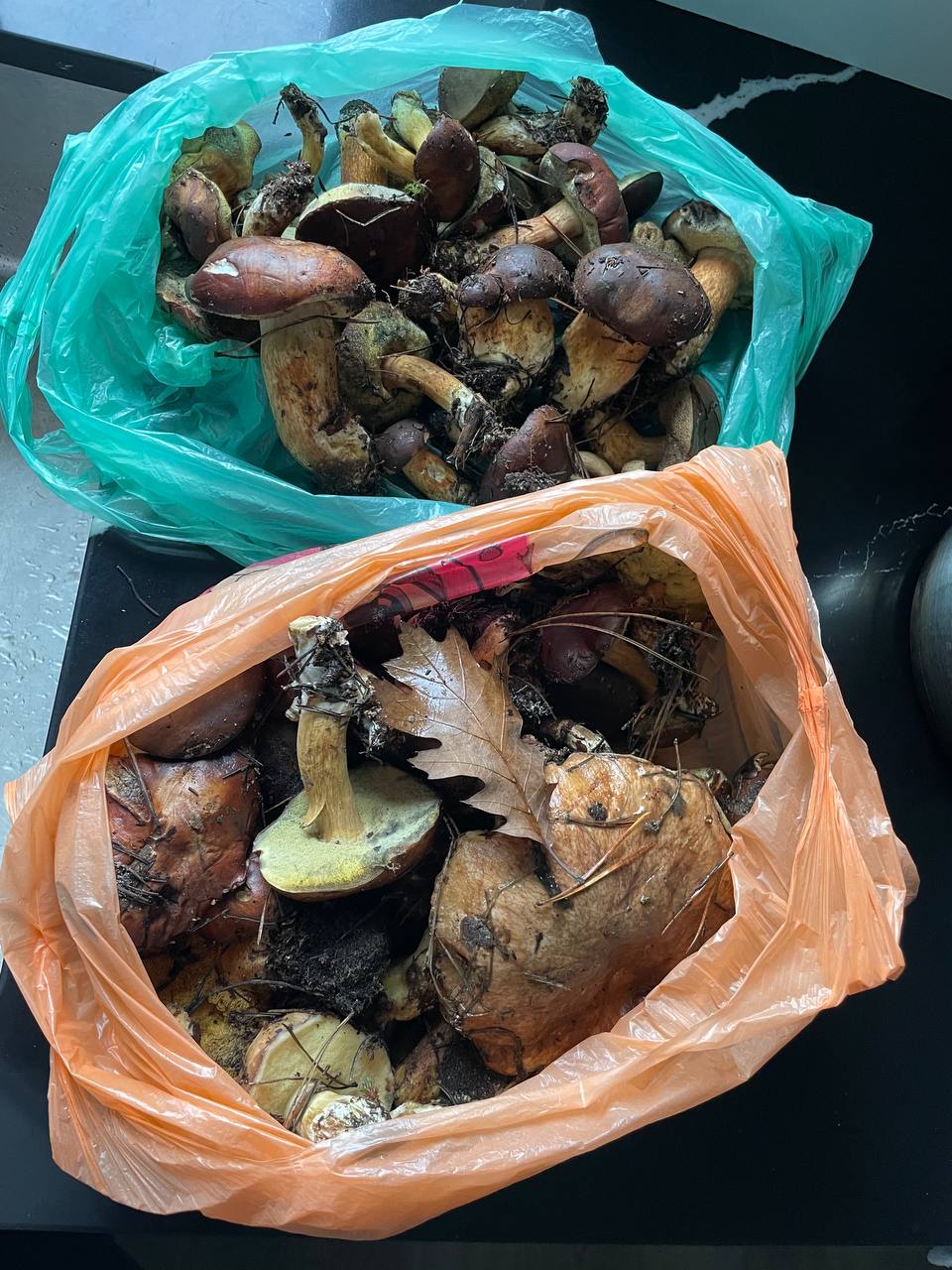 А мухоморы кто-то собирает? Попались такие, грибы, не пойму, поганка или пантерный.