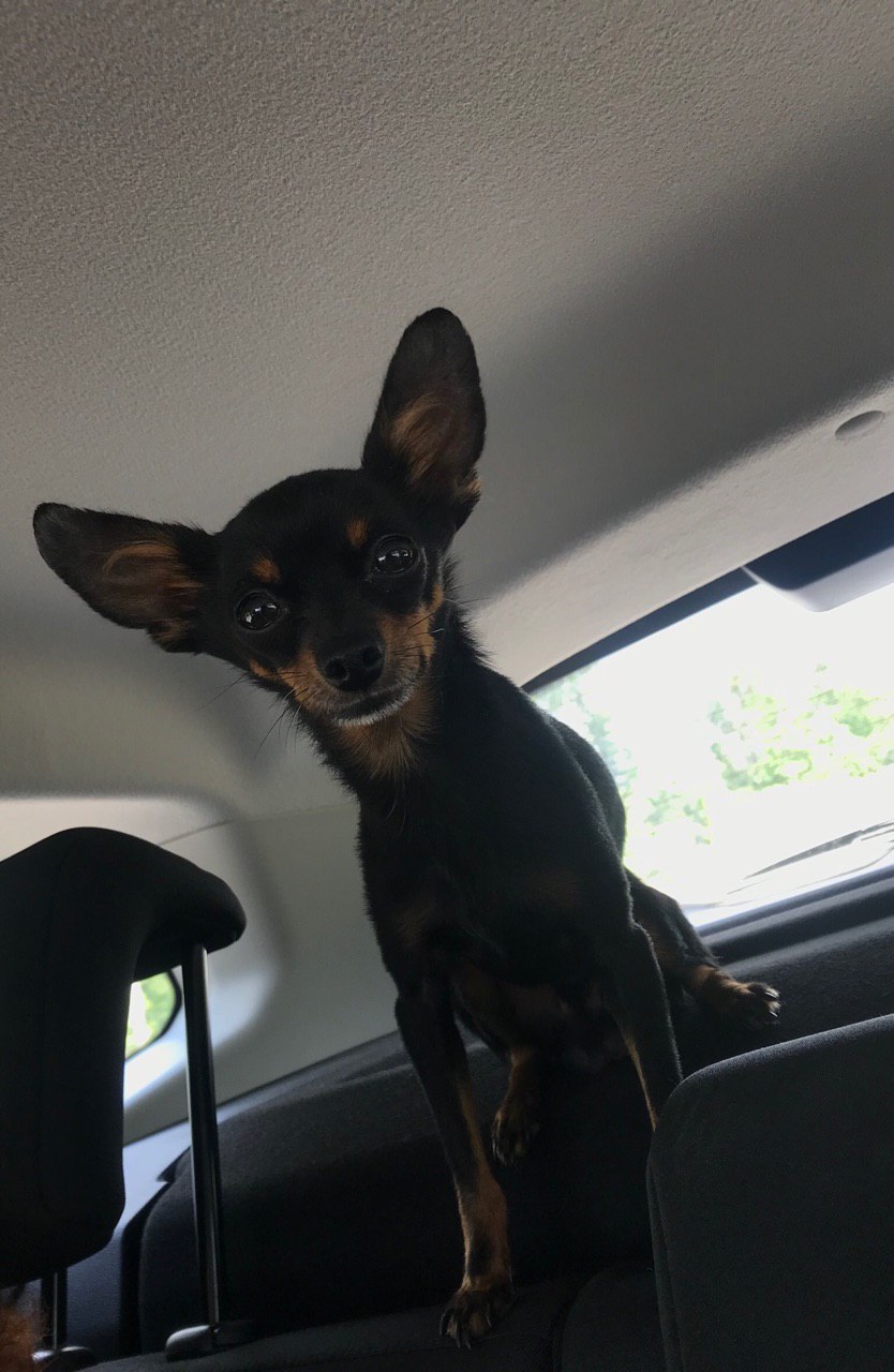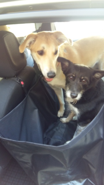 собака 35 кг, машина 3-х дверка мини, главное в дорогу не кормить, гамак с али за 17 дол, вместо ошейника шлею с широкими лямками (например, трикси)