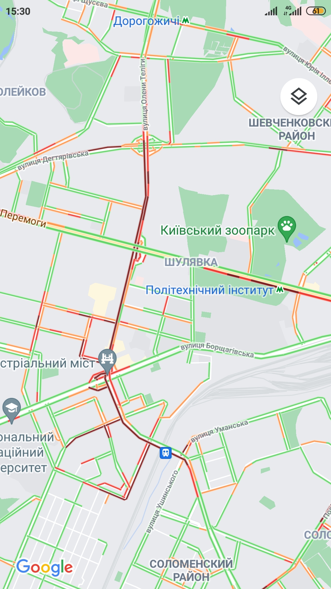 Сегодня уже ощущается во всей красе: перекрыта левая полоса, все стоит от Шулявки. Пока занимаются участком от Кар.дач до пл. Космонавтов