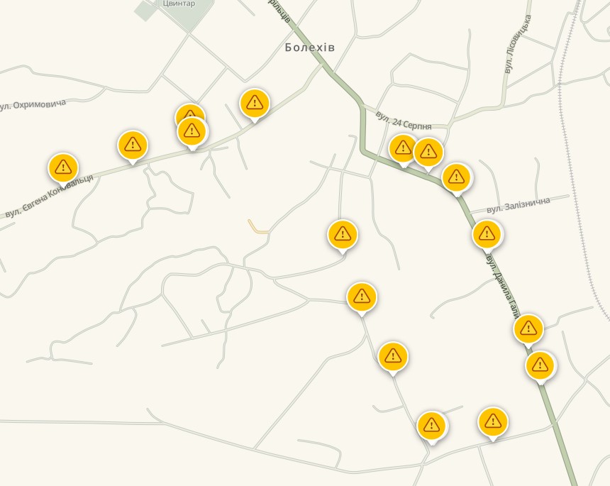 Waze ругался на ямы постоянно они и были но не столь критичные, спокойно можно ехать 60-70км\час. Все гораздо печальнее в г.Болехов. Waze вел прям по центру. Такое чувство что 2км дороги обстреляли с градов (( Но переползли и туда и назад.