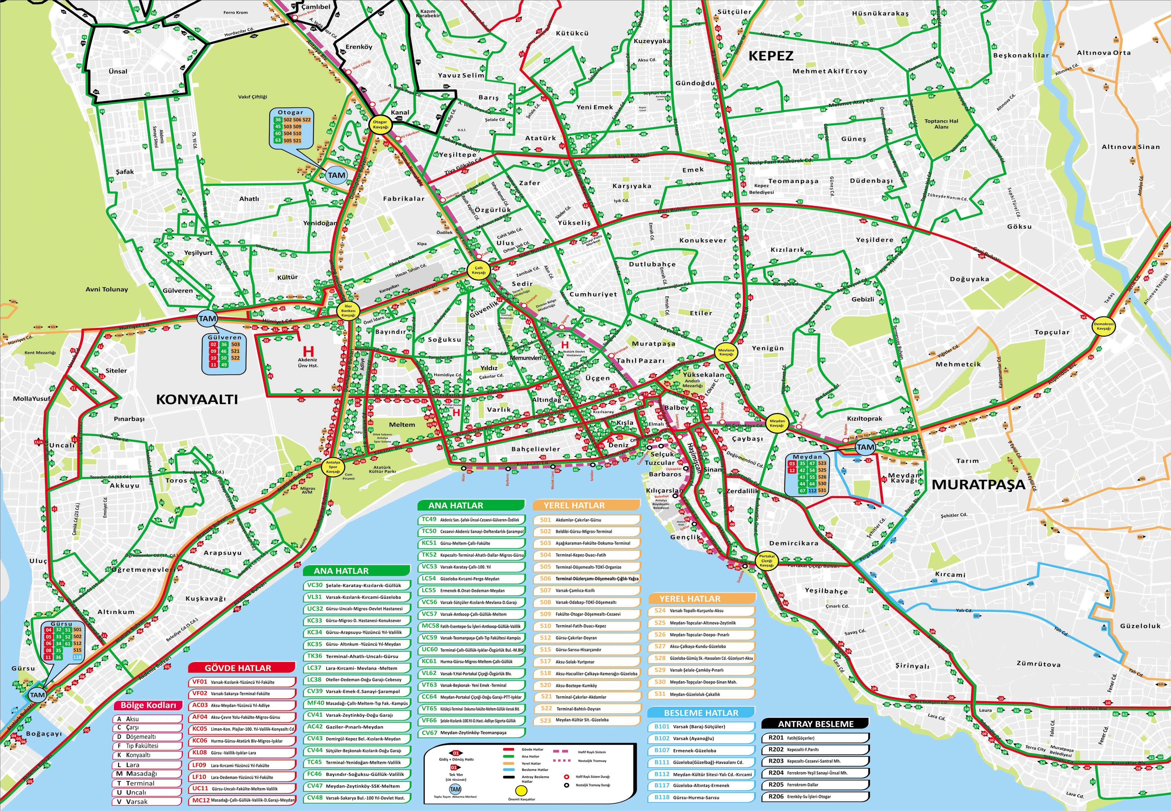 По Анталии ездят большие Автобусы. Просто по дороге с аэропорта их не видно. Если например приехал с Кемера на так сказать долмуше до 5М Мигрос то дальше едешь куда Тебе надо. На остановке есть карта и какой автобус куда едет