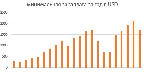 Получая минимальную заработную плату c 1 апреля 2000 года по 1 сентября 2021 года и ни тратя ни копейки (на коммуналку, хлеб и воду), человек за 21 год и 5 месяцев заработал почти $20000 ($19847,20). Можно идти выбирать квартиру, коттедж, яхту, а на сдачу бутыль самогона, чтобы "обмыть" покупки Минимальная зарплата в Украине