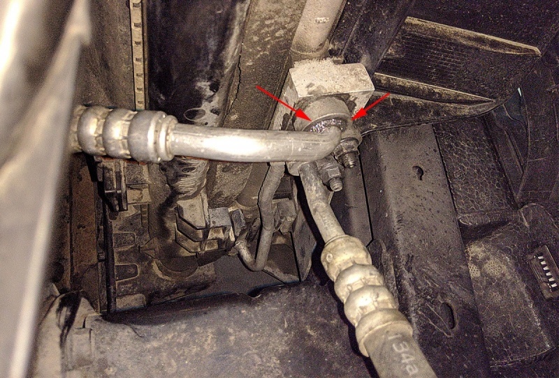 Обрати пристальное внимание на трубку, которая идет от компрессора к радиатору! а конкретно на крепления в радиаторе.