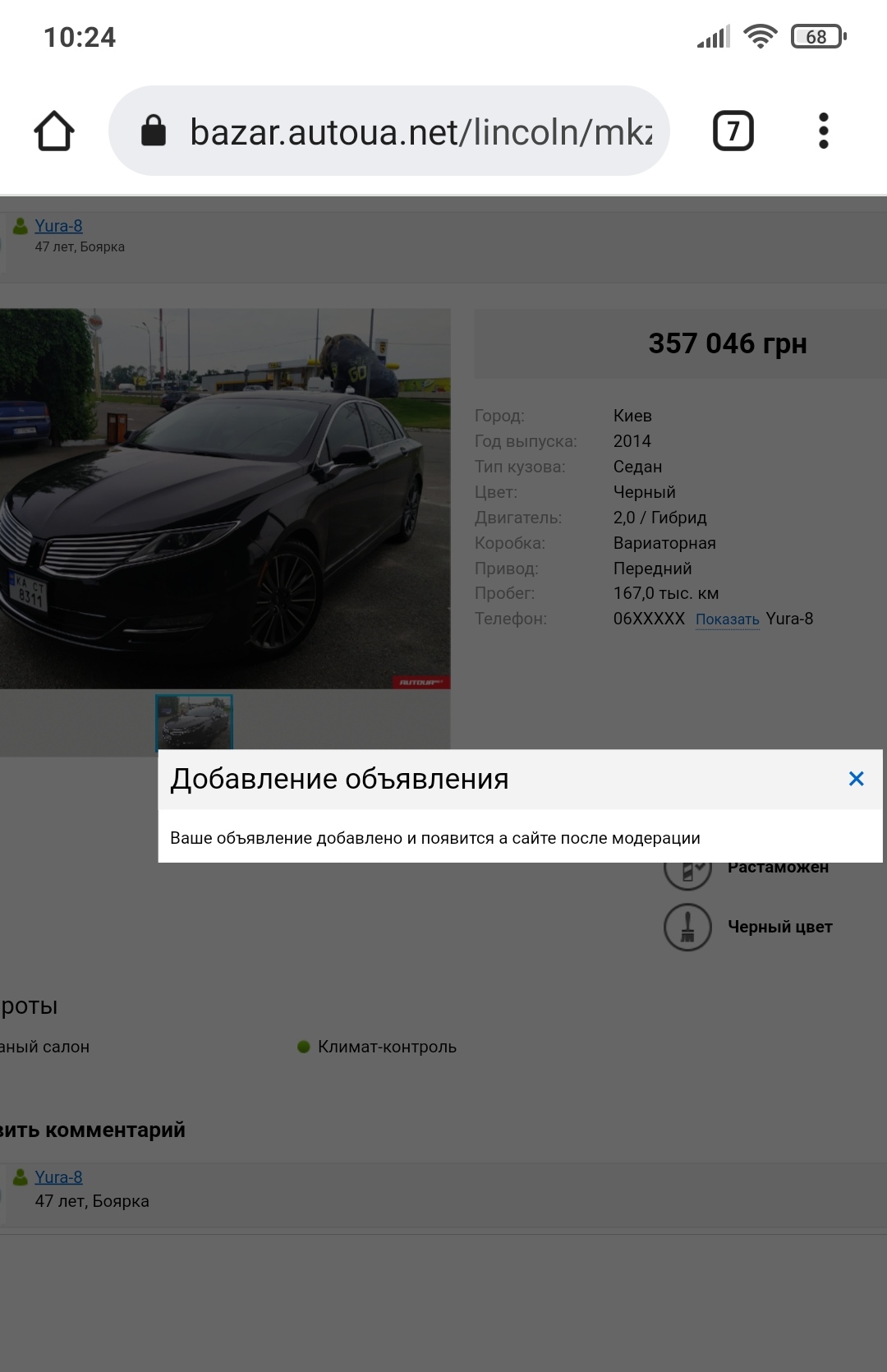 Сегодня ещё раз попробовал... Тоже самое.Другое моё авто добавилось за пару минут а это никак, на Линкольны какое-то табу ?