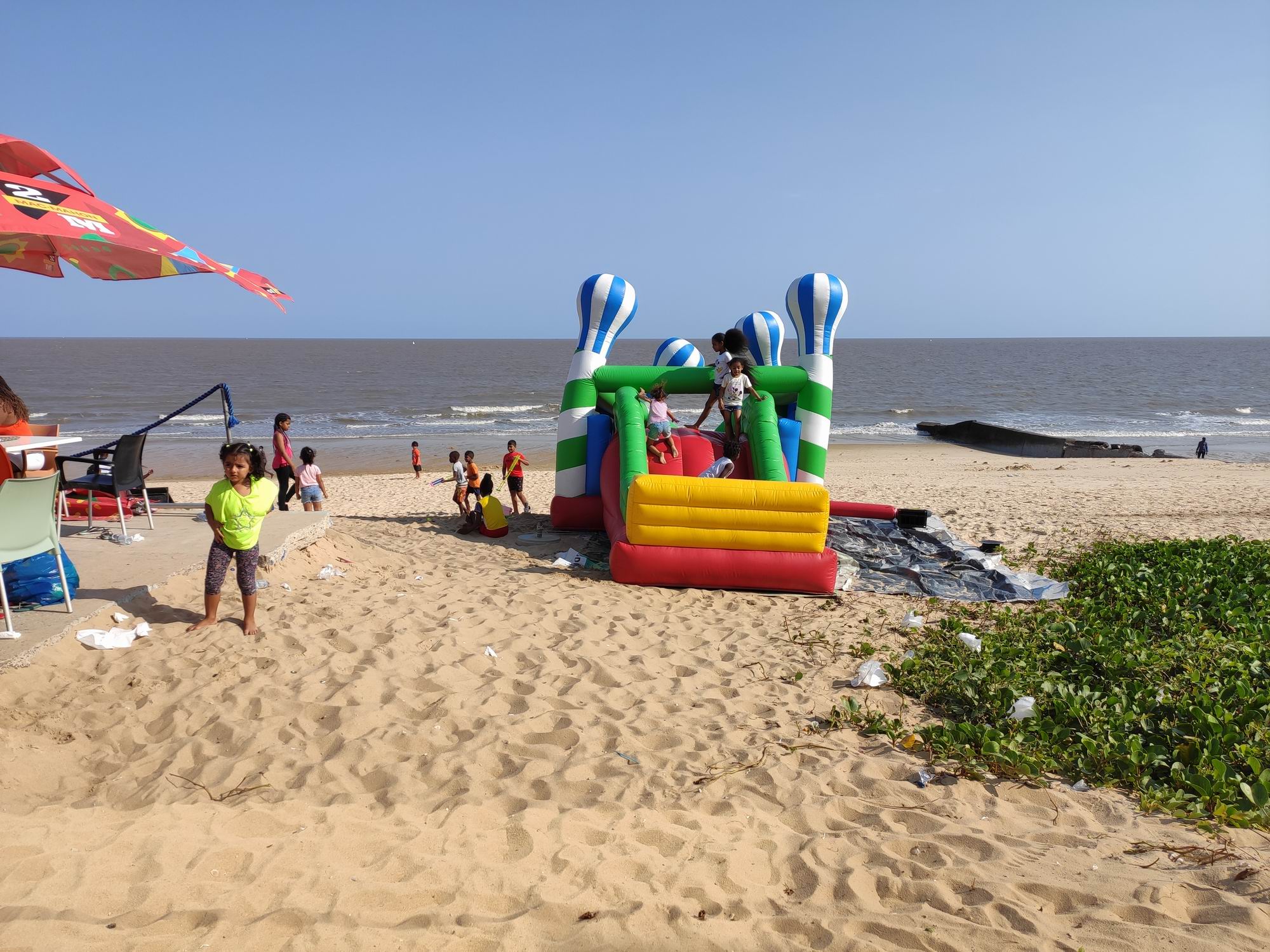 А с другой стороны - пляж, детки играются