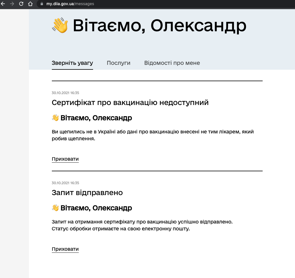 У знакомого в хелси 2 вакцины - в дии пишет одна. Вакцинировался в БЦ, когда в Киеве не было пфайзера в свободном доступе. Сегодня поехали специально в бц выяснить что и как. Оказывается в тот день вакцинировали людей пфайзером и короновак. Ему первую вакцину записали все правильно пфайзер, а вторую влепили в хелси короновак)) теперь поедем ещё раз, потому что данные может поменять только лично тот врач, который регистрировал вакцинацию ))