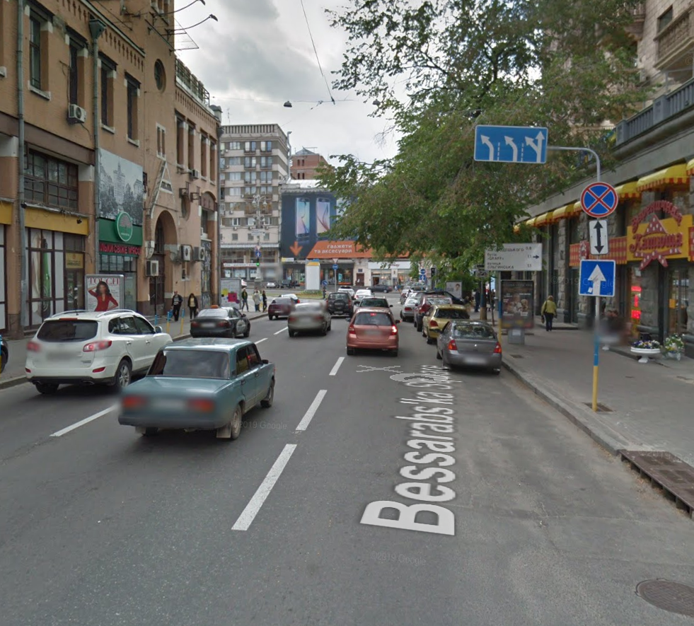 А у зворотньому напрямку нічого не змінилося. Проїзд з інщого боку бесарабки поки що не заблокували. Там тільки намалювали велодоріжку 3 метри завширшки та якусь дурню намалювали на виїзді з Крутого спуску(Круглоуніверситетської).