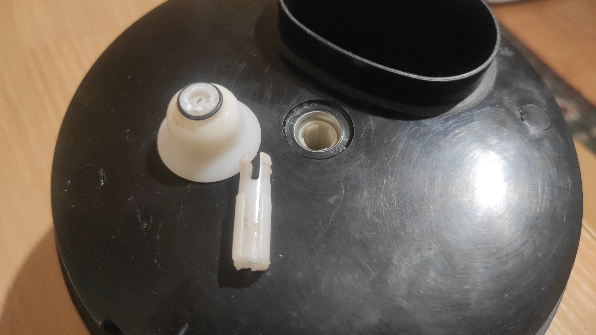 А насколько эта деталь контактирует с пищей? Может, колхозное решение "саморез и суперклеем с содой"?
