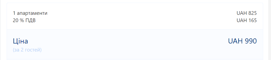 Тут вда варианта - данном случае отель у Вас не брал данные по карте а бронировал на четном слове. Никаких трансакций через букинг не фиксировалось а потому НДС букинг не включал. Второй - предоставляет услуги не ФОП ,а юрлицо на общей системе и тогда НДС не включается.