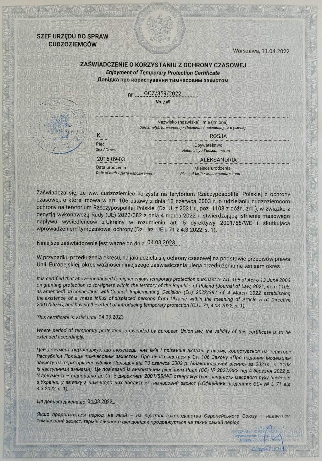pesel дає право знаходитись протягом 18 місяців від 24,02,22. Це означає що протягом цього періоду є можливість заїхати/виїхати. Хто pesel не оформив - працює правило 90/180.