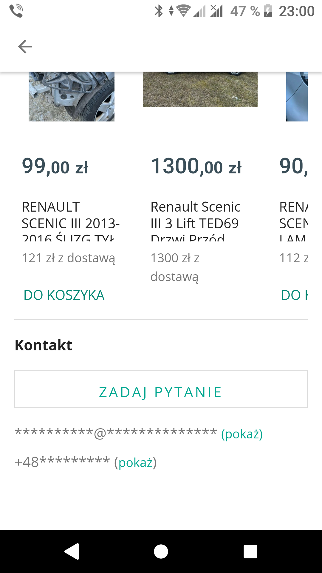 Я знайшов тільки два варіанти рестайлових рено, перший це тут https://allegro.pl/oferta/renault-scenic-iii-3-lift-ted69-drzwi-tylne-lewe-11936805052 він продає дві двері передня 1300 плн, задня 750 плн. Но він продає як фіз. лице тому гарантій ноль, контакт з ним тільки через переписку, на аллегро. Другий варіант знайшов на маркетплац https://www.facebook.com/marketplace/item/1709739872716748/ (якщо ссилка не буде відкриватися, тоді треба спробувати через ВПН)але колір там не такий, но він пише що всі запчасти до тієї моделі є, але судячи з фото ліва частин трохи покоцана , ну і зв'язок з ним також через месседжер. Всі інші варіанти можна купити тільки частково, у когось фару, у іншого бампер і т.д.