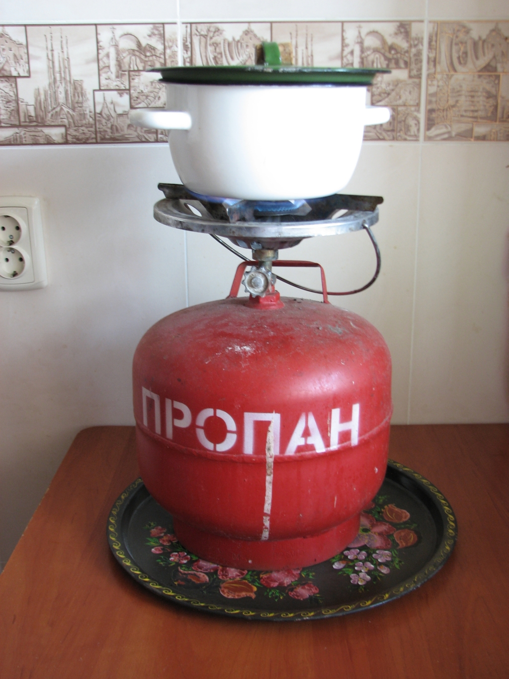 там інша проблема - регулювання полум"я, бо нема редуктора, а так будь-яка з жеклерами під зкраплений газ, балон краще на 20л, бо за заправку балону зазвичай просять окремі гроші, що за 5л, що за 50л, а 20л - і в легковій автівці перевозити легко і самотужки переносити я один час використовув туристичну плитку під маленькі болончики на 220г з перехідником під штуцер для великого балону (у мене є і 5л, і 20л), комфорка одна, але є п"єзо, не потрібні сірники