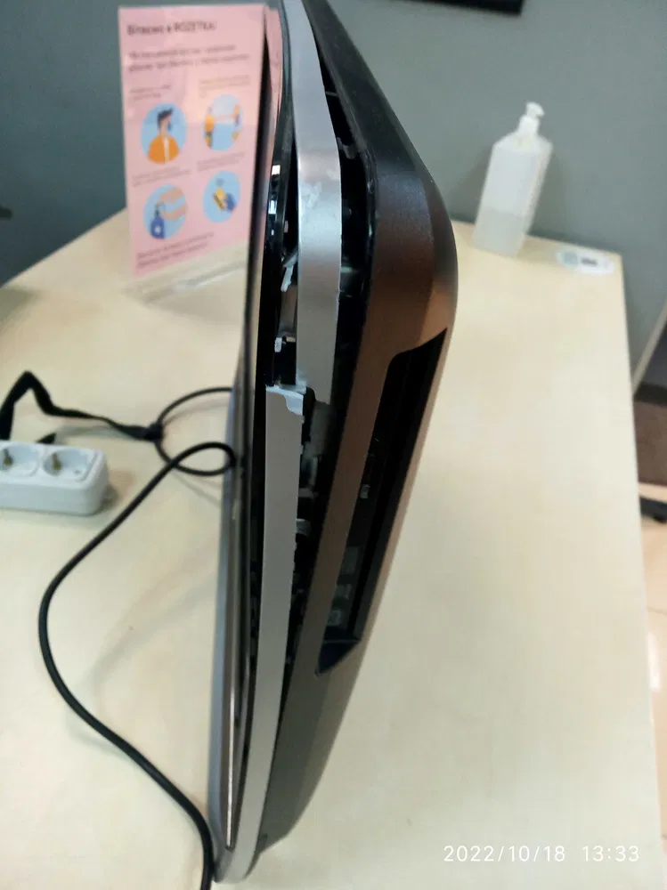 Візуально видно, що коробка декілька разів була перепакована, упакований матеріал відсутній , навіщо? корпус моноблока розламанний, та сам не вмикається.