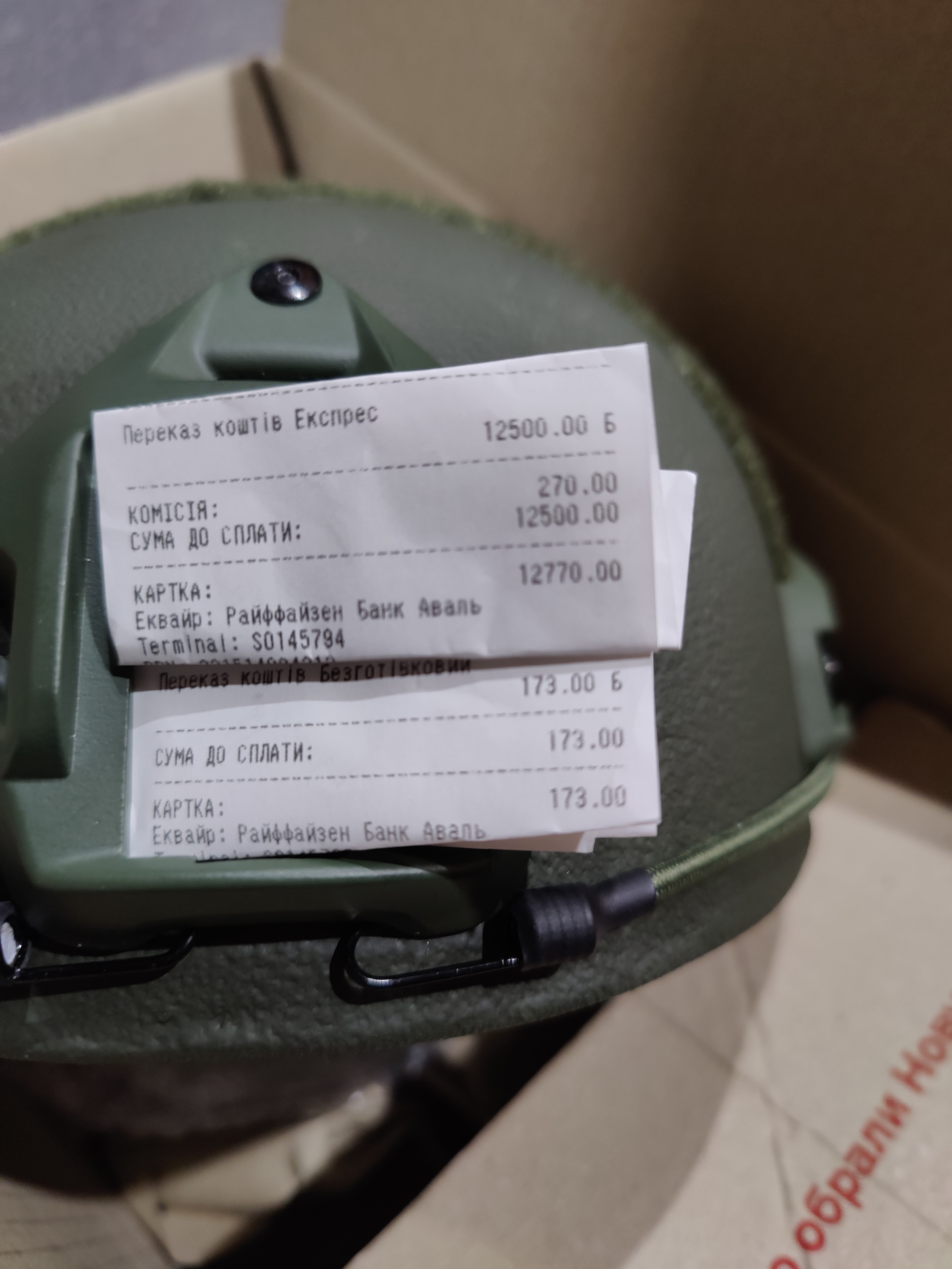 Посылка уехала, спасибо всем.Каска, плитоноска и три электроннки.вчера +400 грн пришло с форума. С учётом оплаты отправки(180грн), в остатке 531грн(пойдет дальше на сигареты или что нужно будет в том направлении) . По плитоноске- цена проф1груп 8376-15% скидки получилось -7119грн.