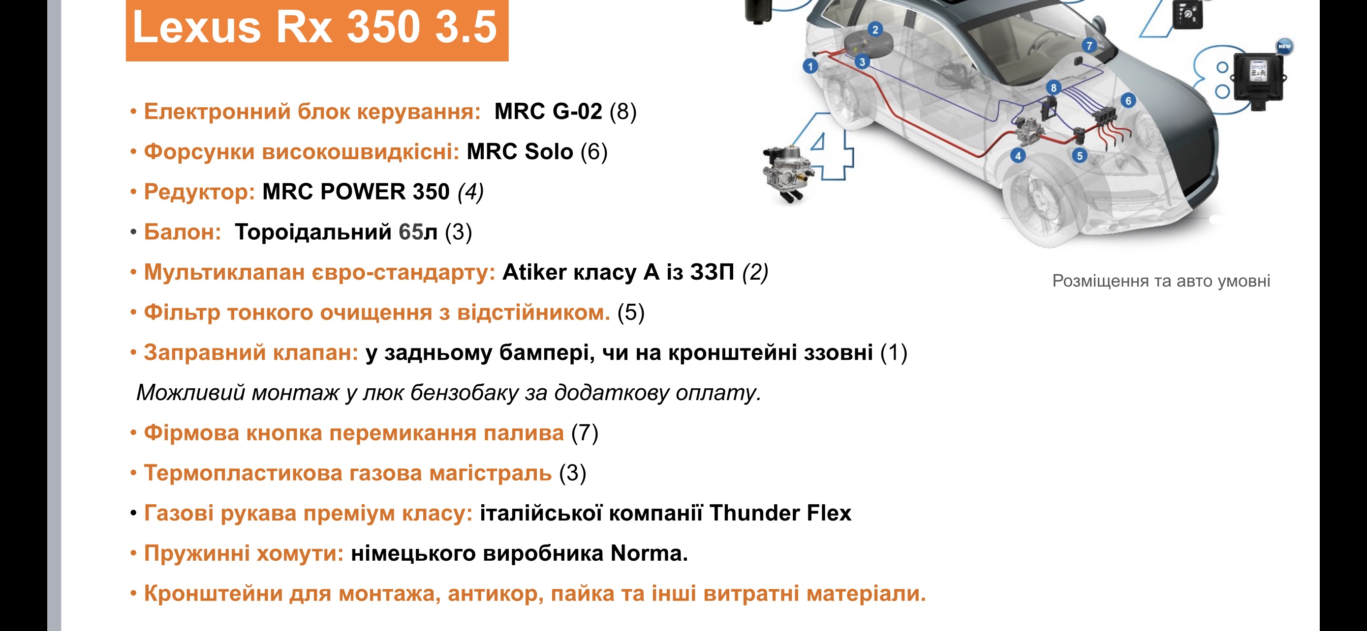 Вариант 1 Електроніка STAG-300 QMAX PLUS з налаштуванням по OBD корекції (Польща), Редуктор GreenGas AT13ХР до 370 к.с. (Італія), Форсунки HANA (Корея) швидкісні, Фільтр парової фази газа 12/2x12 з відстійником, Баллон тороїдальний внутрішній 52л, GREENGAS (Турція), Мультиклапан з котушкою (Італія)