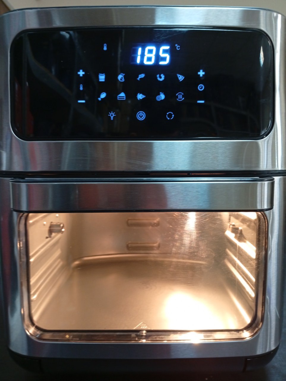 Тип: мультипіч Потужність 1.5 кВт Тип нагрівання: металевий ТЕН Дисплей Управління сенсорне Кількість програм: 10 та ручне виставлення часу та температури приготування. Кількість знімних аксесуарів: 8 Чаша із вентиляційними отворами на 4.2 л та ручка для виймання, решітка для картоплі фрі з вертелом, вертел із кріпленням для курчатка гриль (велика курка на влізе), вертел із 8 шампурами для шашликів, ручка для виймання вертела, деко для використання без чаші 25х22 см (встановлюється на дно та на 2 верхніх рівні), 2 решітки, підсвітка, дверцята із подвійним склом (знімні для миття). Розмір внутрішньої камери 25*22*15 см. Розмір мультипечі 32*32*37 см. Фото знімних аксесуарів по запиту в любий месенджер чи сюди.