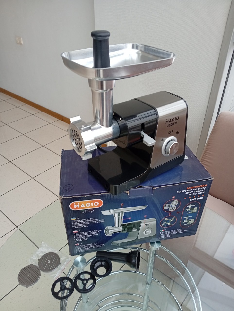 – Максимальна потужність: 2600 Вт – Обробка м'яса, риби, овочів – Кількість режимів роботи: 2 – Кількість видів дисків для фаршу: 3, діаметр 65 мм – Насадка для ковбас, насадка "кеббе", алюмінієвий піддон для м'яса, штовхач, хрестоподібний тонкий сталевий ніж