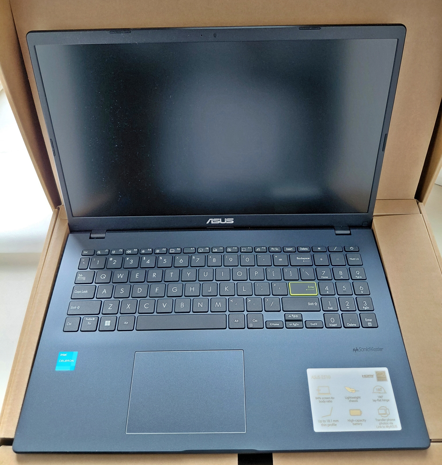 знижка 1200 грн ! Ноутбук ASUS L510KA‑ES04. Оригінал. З США. Новий – Включався тільки для перевірки – Процесор: Intel Celeron N4500, 2 ядра, до 2,8 ГГц – Оперативна пам’ять: 4 ГБ DDR4 – Накопичувач: 128 ГБ eMMC – Дисплей: 15,6″ Full HD (1920×1080), матове покриття – Інтегрована графіка: Intel UHD Graphics – Порти: USB-A, USB-C, HDMI, аудіораз’єм – Бездротові інтерфейси: Wi‑Fi 5 (802.11ac), Bluetooth – Тонкий, товщина приблизно 1,8 см – Вага ~1,57 кг, легкий пластиковий корпус – Windows 11 в режимі S – Клавіатура англійською мовою, для зручності можна наклеїти українські літери – Зарядка американського типу, для роботи в Україні достатньо купити перехідник ASUS — перевірений бренд з високою якістю та надійністю, ідеальний для навчання, офісних задач та перегляду відео