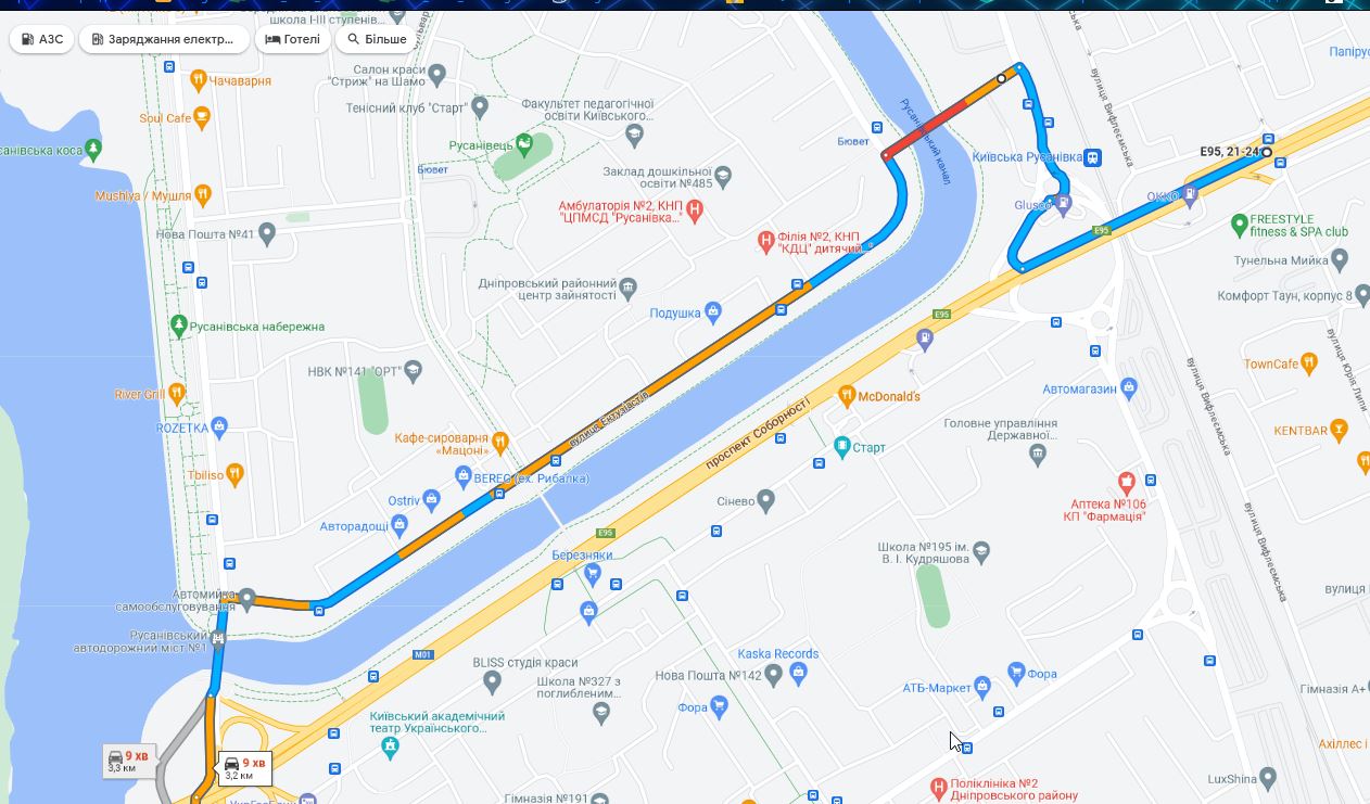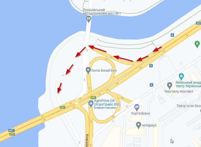Дякую за відповіді. Я теж вчасно з'їхав на Русанівку і розвернувся на мийці, але гугл зараза чуть не обманув Власне, упевнився, що не існує інших "лайфхаків".