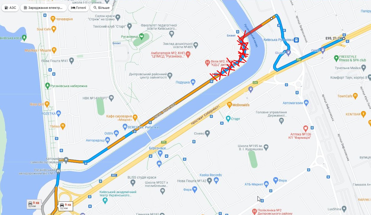 Там ніби зараз перекритий той місток, відновили ремонт на Ентузіастів