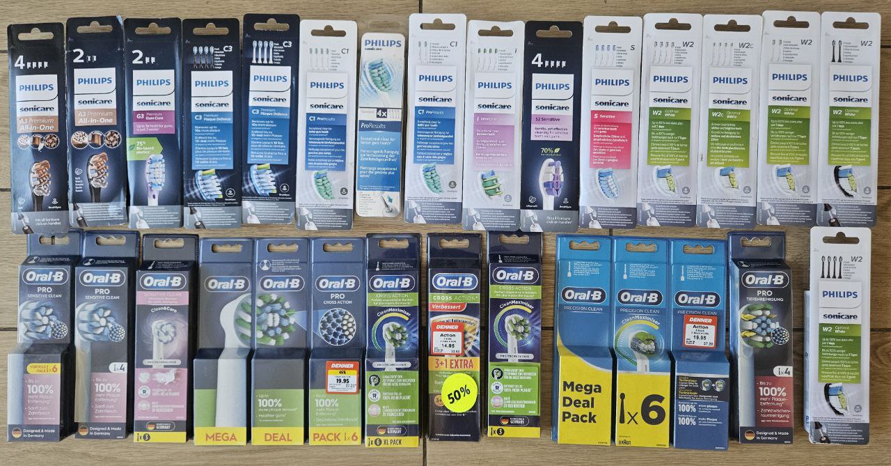 Базові ціни вказані за упаковки по 4 штуки і виключно на моделі С1, І та S, упаковки по дві штуки, а також насадки інших серій коштують дорожче, преміальних серій А, G та С3 коштують ще дорожче