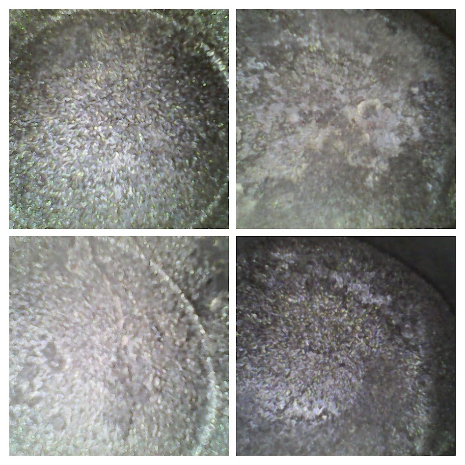 Продовження досліджень: Купив ще компресометр (набір з адапторами під різні свічки, щоб мати можливість самому виконувати процедуру) - показує рівну компресію, біля 11.5-12.0 Атм (+-0.5). Зробили регулювання зазорів клапанів (4 випускні підправлено), і замінено комплект ГРМ. Тепер двигун працює рівніше і тихіше. Лишилося продовжити і закінчити експеримент з примиванням циліндрів (назву промивки не пишу, виробник досить відомий). Як виїжджу ще один бак палива з промивкою - можна буде зробити ще фото тих же поршнів, і порівняти.